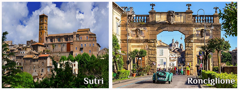 | Ronciglione è uno dei più importanti centri storici e turistici della Tuscia e del Lazio. Si trova nelle vicinanze del Lago di Vico, adagiato sulle dolci colline a sud-est del Lago vulcanico. Da non perdere è Sutri con il suo Parco Naturale Regionale costituito da chiese, necropoli, la Villa Savorelli e l’Anfiteatro Romano; si tratta di una delle aree archeologiche più rilevanti del Lazio. |
